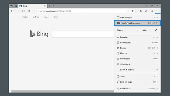 In Microsoft Edge, select the Settings and More  icon, and then New InPrivate window.