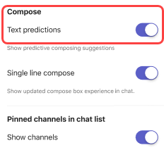 While using the Teams mobile app, try text predictions to type English words and phrases more efficiently. As you type, easily select the suggestions that appear, saving time and reducing typos.